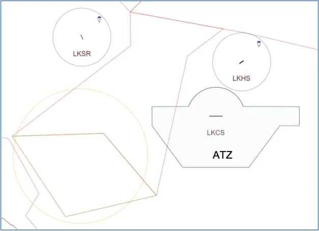 Samostatné zobrazení nového ATZ LKCS, vertikální hranice GND - 3500 ft AMSL (datum účinnosti 17. 7. 2023).