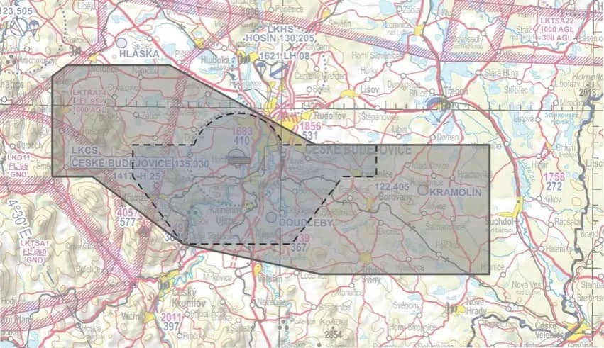 ATZ České Budějovice (GND - 3500ft AMSL s nestandardním tvarem),